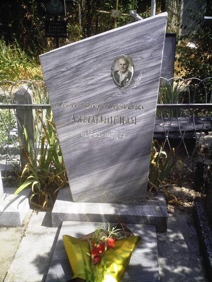Писательница. Была одним из создателей Ташкентской ассоциации пролетарских писателей (ТАПП). Печаталась с1902г.В главном произведении Алматинской - роман “Гнет” над которой она работала четверть века воссоздана картина жизни дореволюционного Туркестана, события революции 1905-07 годов и Октябрьской революции в Средней Азии. Автор повестей “Клятва солнцу”, “Побеждая смерть” (в соавторстве с Махмудовой Н.М),сборников стихов и прозы “Придорожные травы (1927), книги “ Минувшее воспоминания” (1971). Была редактором первого туркестанского литературно-художественного альманаха «Степные миражи». (1914) и опубликовала в нем несколько своих стихов. Перевела на русский язык произведения Аскада Мухтара, Саид Назыра и других узбекских писателей.Место захоронения:Кл№1(Боткинское)Карта№16.