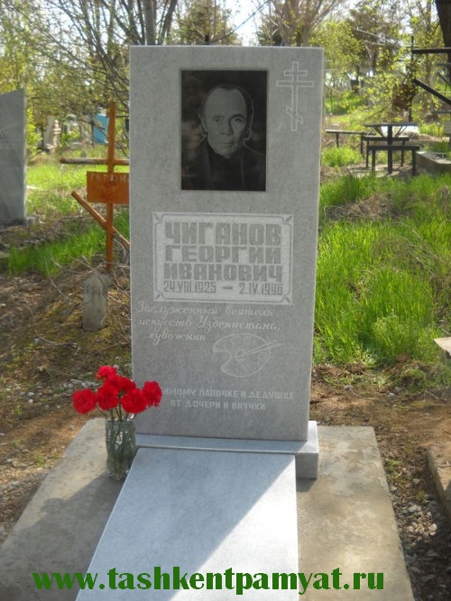 Художник.График.Заслуженный деятель искусств Узбекистана.Георгий Иванович Чиганов родился в деревне Каленое, Западный Казахстан.1942-1946 – Проходил службу в рядах Советской армии.В 1954 году окончил Ташкентскую Республиканскую школу искусств.С 1954 начал работать в периодических изданиях республики Узбекистан.1962 - Был принят в Союз художников СССР.1963 – Стал членом Союза журналистов СССР.1968-1972 - Работал заместителем председателя совета директоров и председателем комитета эстетики Союза художников Узбекистана.1969 - Член Всесоюзного Комитета акварелистов СССР Союза художников. Член Всесоюзного комитета III, IV, V и VI Всесоюзной выставки акварели.С 1972 года – Делегат III Всесоюзного конкурса артистов и делегат VIII, IX, X и XI съездов художников Узбекистана.Акварель занимает особое место в работах Георгия Ивановича Чиганова. Акварельные пейзажи передают гений восприятия мастера, его открытого и яркого стиля, способного чувствовать очарование родины, и искреннего чувства любви к своей стране. Неважно, в каком уголке СССР он находится – отдаленный Кольский полуостров или вдоль сурового Енисея, в горах, предгорьях Тувы, или в его родном солнечном Узбекистане. Художник стремится поймать момент, когда природа появляется во всей своей неподражаемой красоте. Эти пророческие моменты позволяют ему не только выражать свои личные эмоции; через настроение и восприятие он постигает сущность красоты окружающей среды, и воспевает это в своих творениях, создавая волнующий эпос.Чиганов не делит среду на отдельные части, он охватывает расстояние и пространство, позволяет слышать голоса природы, наблюдать ее, и задуматься относительно ее бытия и перемены. Его картины отображают многоликое великолепие тишины и покоя природы, заката и рассвета ("Теплый вечер в Аксу,", "Яркий вечер", "Хива утром", и красоту безмолвия - сдержанное и неусыпное спокойствие, которое предвещает шторм ("Озеро, покрытое облаками"), обожженная земля, в малиновом тумане ("Деревня в красном"), и красоты природы весной, с ее богатством и радостью цветов ("Радуга", "Весенние облака"). Будучи очарованным красотой свой родины, Г. Чиганов изобразил это во все времена года, замечая великолепия окружающей среды. Пейзаж как таковой - это выражение души художника и страны, отражение жизни в реальности. Он не только восхищается уникальным благолепием суровых лесов и озер на севере, величавостью безмолвных гор и цветущих долин, но и наделен любовью к жителям земли, с которыми он связан невидимой, но нерушимой нитью. Именно поэтому он различает все изменения, с таким душевным волнением и гордится делами людей ("Группа на электрохимическом предприятий", "Норильские металлургический комбинат").Смысл гармонии между делами человека, результатами его рабочей силы и его окружения - отображает акварель Г. Чиганова "Очаровательный вечер" и "Горячая пора". Тополи Ломбардии, снежные тюки хлопка, грузовиков и людей рядом с ними - все эти изображения в красочной и размеренной гармонии представляют беспритворность тружеников в горячую пору. Акварель художника передает радость и гордость людей, проживающих на невероятно богатой земле, которая воздает им должное за их усердную работу. Земля и люди, которые возделывают ее - неразделимы. Гармония цвета и света рождает акварель с эмоцией и благозвучностью; показывает и