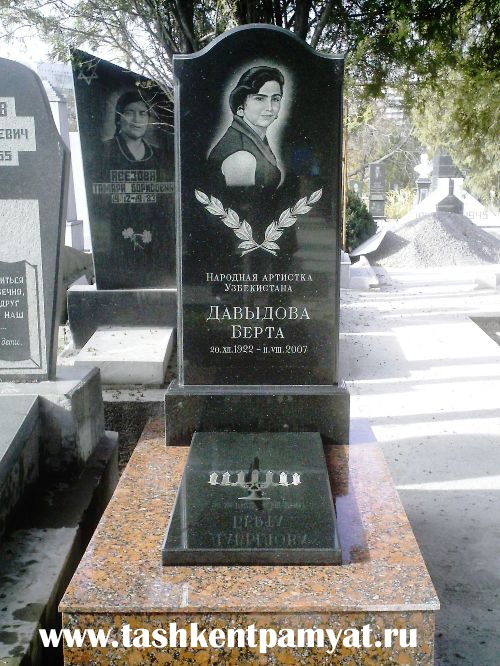 Певица(лирическое сопрано).Народная артистка УзССР(1964).Окончила Ташкентское медицинское училище (1935-38).Медицинская сестра 3 родильного дома (1938-40) и военного госпиталя (1941-43).С 1943г солистка хорового ансамбля Гос. Радиокомитета УзССР.Ведущая солистка ансамбля макомистов Гос.Телерадио УзССР с 1960г.Дальнейший, более чем сорокалетний, трудовой и творческий путь Берты Давыдовой был неразрывно связан с этим коллективом, в частности, с ансамблем макомистов.За этот период своим высоким исполнительским мастерством она завоевала популярность среди поклонников и заняла достойное место в ряду известных артистов нашей страны. Песни из нашего бесценного национального достояния «Шашмакома», а также такие классические песни, как «Муножот», «Фигон», «Сарахбори оромижон», «Самарканд ушшоги», «Дугох», «Баёт-1» в ее исполнении стали шедеврами музыкальной сокровищницы нашего народа.Берта Давыдова в течение всей своей жизни являлась не только высокопрофессиональным исполнителем, но и самоотверженным пропагандистом национального искусства. Наряду с участием в крупных культурно-массовых мероприятиях, концертах, она часто выступала в отдаленных городах и селах, среди трудящихся, демонстрировала свое яркое искусство, чем заслужила любовь и уважение народа.Б.Давыдова делилась секретами профессионального мастерства с десятками молодых дарований, в течение многих лет она плодотворно работала в ансамбле макомистов при республиканском радио и на кафедре традиционного исполнительского мастерства Ташкентской Государственной консерватории. Награждена орденом “Эл-юрт хурмати”Место захоронения:Бухарско-еврейское кладбище(Массив Аллон) Центральная аллея.