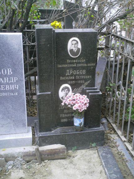 Ботаник. Профессор (1920), Доктор биологических наук (1938), Заслуженный деятель науки Уз.ССР (1945). Один из основателей САГУ (ТашГУ). Окончил Петербургский лесной институт. В 1912 году защитил дипломную работу на звания ученого лесовода 1 разряда.С 1918 г преподаватель, заведующий кафедрой ботаники САГУ (1920-1930).Заведующий кафедрой ботаники Ташкентского сельскохозяйственного института (1930-1956).Дробов.В.П. руководил работами по изучению и освоению дикорастущей флоры,активно участвовал во многочисленных экспедициях. Им описано 82 новых вида растений, опубликовано более 90 научных трудов.В честь Дробова.В.П. назван целый ряд новых видов растений. Награжден орденом “Ленина” и медалями.Место захоронения:Кл№1(Боткинское)Карта№24.