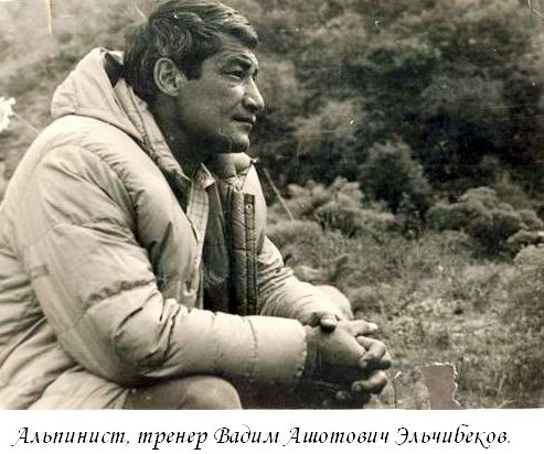 Альпинист.Мастер спорта СССР(1955).Заслуженный тренер УзССР.(1964).Родился в 1931г в Ташкенте, в семье служащих.Окончил гидротехнический факультет Средниазиатского политехнического института (1956).Вадим Эльчибеков рано выбрал свой жизненный маршрут и маршрут и не сошел с него, поднимаясь, все выше и выше. Первое восхождение совершил еще в школе в 1949 году на вершину Большого Чимгана.В. Эльчибеков занимался альпинизмом одержимо и целеустремленно.В 1953 г. Вадим становится организатором и руководителем сложных экспедиций в горах Средней Азии.С 1953 по 1987 г.г. Вадим Эльчибеков - тренер сборной команды республики.В сборную команду входили альпинисты из разных городов республики: Ташкента, Чирчика, Газалкента, Алмалыка, Ангрена, Навои, Самарканда, Ферганы.Узбекские альпинисты проводили ежегодные майские альпиниады и Чимгане - живописном, зеленом урочище, где находится высшая вершина Республики - Большой Чимган (3127м.), летом выезжали в альплагеря Дугоба, Талгар. Узбекские альпинисты проводили ежегодные майские альпиниады и Чимгане - живописном, зеленом урочище, где находится высшая вершина Республики - Большой Чимган (3127м.), летом выезжали в альплагеря Дугоба, Талгар. Сборная команда Узбекистана под руководством В. Эльчибекова много лет по праву считалась одной из ведущих в Советском Союзе. Она неоднократно становилась чемпионом и призером первенства страны по альпинизму в классе высотных, высотно-технических восхождений и траверсов.Многие члены сборной команды награждены жетонами пик «Ленина» и пик «Коммунизма», учрежденными федерациями Узбекистана и Таджикистана за восхождения на эти вершины.Бессменный тренер команды в течении более 30 лет заслуженный тренер Узбекской СССР В. Эльчибеков был незаурядной личностью, имел большой опыт горовосходителя, умел правильно оценить возможности команды, изучал и выбирал вместе с участниками команды новые сложные маршруты. Это был человек фанатично преданный горам, его жизнь в спорте - огромная работа по развитию альпинизма в Узбекистане.Признанием высшего мастерства в альпинизме становится звание «Снежный барс» за покорение четырех семитысячников Средней Азии пик Коммунизма(7495м), пик Победы(7439м), пик Ленина(7134м),пик Е.Корженевской(7105м) и пик Хан-Тенгри(6995м). Как тренер он умел правильно оценить возможности команды, учитывая физические, технические и психологические качества ее членов, изучать и выбрать новые интересные маршруты восхождений, четко организовать работу на каждом этапе восхождения. В период подготовки экспедиции Вадим четко распределял обязанности среди членов команды, знал кто лучше подготовит хозяйственную часть, кто спортивное снаряжение, а кто силен в разработке маршрута. В альпинистской экспедиции все важно, от подготовки зависит успешный результат. Во время подготовки вместе с членами команды обсуждали, советовались, спорили. Вадим был хорошим психологом, прислушивался к мнению команды, но окончательное решение принимал единолично. Ему верили, уважали за мужество, решительность, умение принять волевое решение с учетом ситуации. На помощь приходили опыт и интуиция, помогали в условиях повышенной опасности свести риск к минимуму и обеспечить безопасность. Как-то при восхождении на пик Ленина в 1974 году команда ночевала над скалой Липкина, утро выдалось пасмурным, шел с