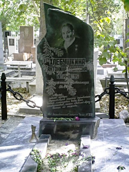 Педагог.Герой Социалистического Труда (1987).Заслуженная учительница УзССР. Директор детского дома № 22 г. Ташкента.Родилась в 1914 году в Самарской губернии в семье крестьянина.В девять лет устроилась работать к зажиточным людям, где присматривала за детьми, здесь же с ними заодно она изучила грамоту. В 1936 году, по окончании педагогических курсов, её по путёвке комсомола отправили в Таджикскую ССР для работы с детьми и молодёжью. Вскоре её перевели в Ташкент (Узбекская ССР). Вся трудная, полная тревог жизнь Антонины Павловны Хлебушкиной связана с детьми, с комсомолом.Еще в довоенные годы работала она пионервожатой в школе, была директором детского центра в Ташкенте. В начале 1942 года в Узбекскую ССР с прифронтовой полосы, из разрушенных городов и сёл стали прибывать сотни составов с эвакуированными людьми, где большей частью были больные голодные дети, и возникла проблема их расселения. Многие семьи взяли к себе по несколько детей. По всей республике были организованы детские дома. И тогда же, летом 1942 года, Главным управлением военно-промышленного строительства Москвы было принято постановление об открытии в глубоком тылу, в Ташкенте, Детского дома № 22 для детей-сирот военных строителей. Тогда же А.П.Хлебушкиной, работавшей в то время директором Центральной детской туристско-экскурсионной станции, поручили организовать и возглавить руководство детским домом. Она сразу же согласилась. С тех пор, как А.П.Хлебушкина стала директором детского дома (1942-1995), она ни на минуту не оставляла детей для которых стала самым родным и близким человеком.Более четырёх тысяч детей сорока национальностей вышли из стен Детского дома № 22. Каждого из них А.П.Хлебушкина помнила по имени. Для тысяч воспитанников детский дом стал родным, а самым близким и дорогим человеком – мама, А.П.Хлебушкина. Более сорока её воспитанников взяли эту замечательную, добрую фамилию, которую носят с гордостью. Хлебушкина искренне любила детей. Своим трудом она завоевала любовь не только воспитанников, но и всего узбекского народа.Благодаря воспитанникам, имя дома Мехрибонлик им. Хлебушкиной стало известно далеко за пределами Узбекистана. Судьба раскидала выпускников по разным странам и континентам мира. Сейчас они живут и работают в России, Англии, США, Канаде, Израиле, Германии, Южной Корее, Австралии, и при этом всегда с особой любовью и ностальгией вспоминают о своем первом доме, с которым поддерживают тесные связи. Бывшие воспитанники часто приезжают в Ташкент, чтобы поклониться могиле матери – А. П. Хлебушкиной, встретиться в доме детства со своими братьями и сестрами, братишками и сестренками – сегодняшними воспитанниками дома милосердия. Указом Президиума Верховного Совета СССР от 16 декабря 1987 года за большие заслуги в воспитании, обучении, гражданском становлении детей-сирот и детей, оставшихся без попечения родителей, директору Детского дома № 22 города Ташкент Узбекской ССР Хлебушкиной Антонине Павловне присвоено звание Героя Социалистического Труда с вручением ордена Ленина и золотой медали «Серп и Молот».Член Президиума Правления Советского детского фонда имени В.И.Ленина.Награждена орденами “Ленина”, “ Трудового Красного Знамени”, медалями. Лауреат премии Ленинского комсомола (1986), Международной премии и золотой медали имени Льва Толстого (1987, Сов
