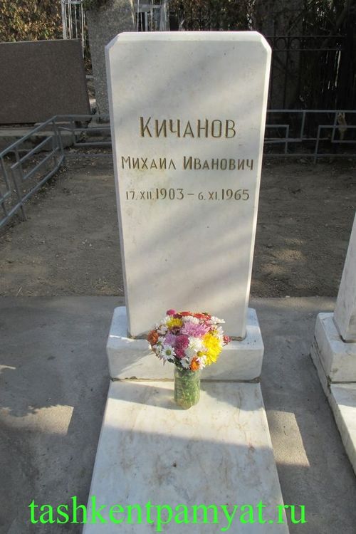 Государственный деятель.Михаил Иванович Кичанов родился в 1903 году в Пермской области в крестьянской семье. Свою трудовую деятельность он начал в Узбекистане в 1921 году. Здесь М. И. Кичанов вначале вел комсомольскую, а затем хозяйственную работу. В 1926 году он вступает в ряды Коммунистической партии. С 1930 года и до последних дней своей жизни М. И. Кичанов занимал руководящие должности в советских и хозяйственных органах. Он был заместителем Председателя Совета Министров республики, первым заместителем министра хлопководства Узбекской ССР, начальником Главсельстроя при Совете Министров Узбекской ССР, председателем республиканского объединения «Узсельхозтехника». В течение последних трех лет он работал первым заместителем начальника Главного среднеазиатского управления по ирригации и строительству совхозов.М. И. Кичанов много сил и энергии отдал делу развития сельского хозяйства Узбекистана.М. И. Кичанов неоднократно избирался членом ЦК Компартии Узбекистана, депутатом Верховного Совета Узбекской ССР ряда созывов. За заслуги перед Родиной он награжден тремя орденами Трудового Красного Знамени, орденом «Знак Почета», орденом Красной Звезды и медалями Союза ССР.На каком бы участке ни трудился М. И. Кичанов, он работал честно и самоотверженно, был хорошим организатором, человеком высокой принципиальности и требовательности к себе.М. И. Кичанов пользовался заслуженным авторитетом среди партийного и советского актива республики.Имя Кичанова М.И присвоено совхозу 26А Голодностепстроя и одной из улиц Ташкента.Место захоронения: Кл №1Боткинское,коммунистический участок,карта №2.