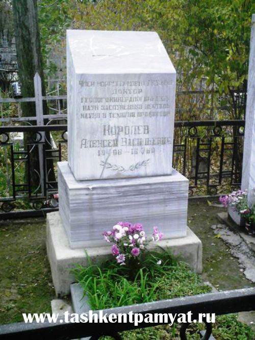 Ученый геолог.Доктор геолого-минералогических наук (1942).Профессор(1942).Заслуженный деятель науки и техники УзССР(1947).Член корреспондент АН УзССР(1960).Окончил геологоразведочный факультет Московской горной академии(1926).Научный сотрудник Геологического комитета в Ленинграде(1926-28).В1929 г.работал в Среднеазиатском Геологическом управлении старшим геологом-консультантом, заведующим отделом металлов.Преподаватель(1929-1930), доцент (1930-32) САГУ.С 1930 по 1934 гг. руководил разведкой первенца горнометаллургической промышленности Узбекистана - Алмалыкского медного месторождения.Основатель, заведующий кафедрой полезных ископаемых Среднеазиатского политехнического института с 1932 г.Читал лекции по курсам: “Рудные месторождения”, “Структуры рудных полей”.В 1935 г. ему присуждена степень кандидата наук.В 194 2г. защитил докторскую диссертацию на тему: “Строение и металлогения Алмалыка”, и был утвержден в звании профессора. Обосновал широкие перспективы рудоносности Средней Азии.С 1942 по 1957 гг. – консультант треста “Средазцветметразведка”.С 1958 по 1960гг. консультант в Институте геологии, где организовал лабораторию. Развивал структурное направление в учении о рудных месторождениях. Обосновал методику количественного их прогнозирования.Основные научные труды посвящены теории рудообразования, геологии рудных месторождений Карамазара, вопросам рудных парагенезисов и зональности оруденения, геохимии элементов и значению рудных элементов в истории развития Земли.Разработал морфогенетическую классификацию послемагматических рудных полей; выявил структурные условия размещения послемагматических руд с применением методов статистики и геометризации; изучил свойства и деформации различных рудовмещающих пород, контролирующих размещение руд. Им составлена схема, увязывающая образование гидротермальных месторождений с развитием.Автор более 170 работ, из которых 65 опубликовано, в том числе 7 монографий.Подготовил 12 кандидатов наук.Награжден орденом “Трудового Красного Знамени”(1953), медалями.Имя А.В. Королева присвоено одному из месторождений Карамазара – “Королево” в Канимансурском рудном поле и улице в г. Алмалыке.Место захоронения:Кл№1(Боткинское).Карта№25.