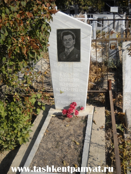 Герой Советского Союза.Младший сержант, наводчик 45-миллиметрового орудия полковой батареи 1281-го стрелкового полка 60-й стрелковой дивизии, 47 – армии, 1- го Белорусского фронта.Родился в селе Верх-Ануйское Быстроистокского р-на Алтайского края в семье крестьянина. Русский.Член КПСС с 1952. С 1930 жил в г.Бийске, а с 1938 - в г.Ашхабаде. Образование н/среднее. Работал слесарем на авторемзаводе.Призван в Советскую Армию Ашхабадским горвоенкоматом в 1942 году.В боях Великой Отечественной войны с сентября 1942.Со своей пушкой самого малого калибра (из орудий полевой артиллерии) младший сержант Кузьмин в середине января 1945 года во время решающего наступления нашей армии на гитлеровскую линию обороны вблизи Варшавы двигался вровень со стрелками.Едва пехотинцы вынуждены были залечь под огнем, младший сержант тут же определял вражескую цель и поражал ее метко выпущенным снарядом. По мнению командования полка, именно умелые и отважные действия наводчика Кузьмина во многом способствовали успешному овладению населенными пунктами Колушин, Гуры, Окунин в районе польской столицы.У Окунина одновременно с пехотой переправился орудийный расчет младшего сержанта через Вислу. Снаряды «сорокапятки» точно ложились в цель, сеяли смерть среди контратакующих гитлеровцев.Фашистскому самоходному орудию удалось вывести из строя пушку Кузьмина.Теперь уже с автоматом в руках пошел доблестный артиллерист в очередную атаку на гитлеровцев.Он не покинул поле боя даже тогда, когда был ранен.Такие воины, как Кузьмин, обеспечили успешное форсирование Вислы в этом районе нашими основными силами.Указом Президиума Верховного Совета СССР от 24 марта 1945 года сержанту Кузьмину Анатолию Наумовичу присвоено звание Героя Советского Союза. После войны вернулся в Ашхабад. В 1949 окончил Ашхабадскую юридическую школу.Работал помощником прокурора в Пятигорске, с 1950 - в органах прокуратуры Алтайского края.Потом переселился в г. Самарканд, работал в чаеразвесочной фабрике.Награжден орденом “Ленина”, “ Отечественной войны 1 ст ”, медалями.Место захоронения: г.Самарканд.Военное кладбище.