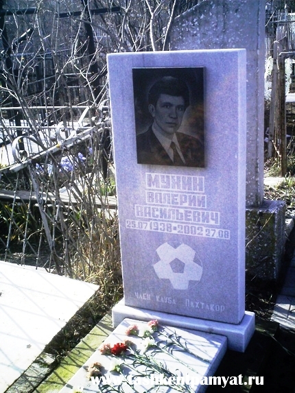 Футболист команды “Строитель” Ашхабад (1958-60) “Пахтакор” Ташкент (1960-66).Тренер команды “ Наримановец” (1968-78).Футбольную школу Валерий Мухин начал в Ашхабаде, когда три года (1958 – 1960) играл за столичный клуб «Строитель». Cпособного полузащитника пригласили в лучшую команду региона ташкентский «Пахтакор», который играл в высшей лиге. В «Пахтакоре» Валерию определили место поближе к защитникам. В сезоне-1962 Мухин – игрок основного состава - один из главных действующих лиц команды, которая сотворила сенсацию, опередив многих старожилов лиги, и заняв шестое место в чемпионате высшей лиги.За «Пахтакор» Мухин отыграл шесть сезонов. Футбольная подготовка была у него основательная – комбинационное зрение, настойчивость в отборе мяча, своевременный точный пас. В команде его уважали, и по спортивным, и по чисто человеческим качествам. Как правило, игрок середины поля хорошо видит, как выражаются футболисты «поляну», такие футболисты предрасположены к тренерской работе.Мухин был однолюб, после «Пахтакора» играть нигде не захотел, перешел на тренерскую работу. Обладая опытом, имея педагогический талант, Валерий в 1968 году, принял команду города Нариманова из Хорезмской области и добросовестно тренировал ее десять сезонов, потом более десяти лет работал в клубной команде, внеся свой достойный вклад в развитие футбола в республике.Отличное знание тонкостей футбола и порядочность Мухина отмечают все, с кем ему приходилось общаться. Болельщики шестидесятых годов надолго запомнили игру Валерия Мухина в «Пахтакоре», его самоотверженность.Имя Валерия Мухина занесено в почетный «Зал славы» футбола нашей страны.Место захоронения:Кл№1(Боткинское)Карта№2.