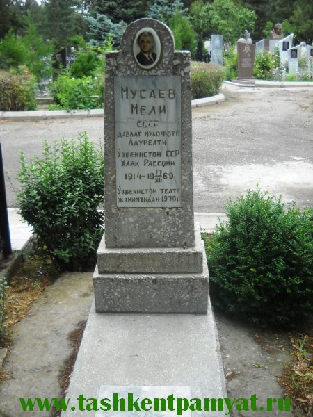Театральный художник. Народный художник УзССР (1950).Окончил Самаркандский художественный техникум (1928-30).Мели Мусаеву было всего шестнадцать лет, когда он в 1931 году впервые переступил порог Узбекского театра оперы и балета и начал свой трудовой путь сначала учеником, а потом помощником художника. Учителями Мусаева были художники С.Афанасьев и М.Гвоздиков. В 1937 г., к первой декаде узбекской литературы и искусства в Москве, М. Мусаев совместно с ведущим художником театра оперы С. Афанасьевым подготовил оформление спектакля „ Фархад и Ширин “. Последующие годы были заполнены напряженной учебой и творческой работой. В 40-гг. Мусаев уже самостоятельно оформил оперы: „ Наргиз “ М. Магомаева, „ Тахир и Зухра “ Т. Джалилова и Б. Бровцына „ Лейли и Меджнун “ Р. Глиэра и Т. Садыкова, балет „ Ак-Биляк” Василенко и др.Крупным достижением художника было оформление оперы „Гюльсара" Р. Глиэра и Т. Садыкова, удостоенной Сталинской премии. „ Декорации к опере „ Гюльсара” написаны без претензии назойливую „ восточную “ красивость, - писала „ Правда Востока”.- Они гармонично дополняют слово и музыку, помогают раскрытию содержания спектакля.Творческому совершенствованию Мусаева способствовало знакомство со сценой Большого театра во время подготовки ко второй декаде узбекского искусства и литературы (1951), работа художника в мастерской Э. Мандельберга по изучению и применению светящихся красок и консультации художника В.Рыфтина по оформлению „ Лейли и Меджнун “. Рыфтин помог Мусаеву усовершенствовать технику применения аппликаций, тюлей и освоить тонкую, ажурную работу в декорациях.Наиболее значительные работы Мусаева последних лет: оформление спектаклей „Семь красавиц “ Кара-Караева, „ Аленький цветочек” по сказке Аксакова и „У подножья Саян” Ряузова. Атмосферу сказочности в спектакле „ Аленький цветочек “ создают искусно выполненные декорации деревушки. Хорошо; выполнена картина заколдованного леса с огромными, причудливо переплетающимися ветвями деревьев. Изобретательность художника помогла в оформлении терема купца. Заднюю стенку этого терема художник сделал открытой. Через большой оконный проем виднеется .дорога и лес. Кроме того, благодаря этому проему стало возможным показать интересное зрелище — полет ковра-самолета. В оформлении балета „Семь красавиц “ Мусаев обнаружил тонкое понимание азербайджанского фольклора, знание эпохи Низами.В период подготовки к постановке спектакля „У подножья Саян “ М. Мусаев совместно с другими творческими работниками театра специально выезжал в Бурят-Монголию для сбора необходимого этюдного материала. Эта поездка сыграла положительную роль, сообщив декоративному оформлению спектакля достоверность и жизненную конкретность. В работе над декорациями упомянутых спектаклей как бы синтезируются главные качества М. Мусаева как оперного художника: музыкальность, чувство ансамбля, образный живописный язык. У Мусаева есть еще одно достоинство: он хорошо знает художественное наследие узбекского народа и умело его применяет. В начале 1958 г. ташкентский зритель увидел оперу М. Ашрафи „ Дилором”, оформленную Мусаевым, и по заслугам оценил его работу. Декорации Мусаева, органично сливаясь с музыкой и игрой актеров, помогают зрителю понять гуманистическую сущность поэмы Алишера Навои „С