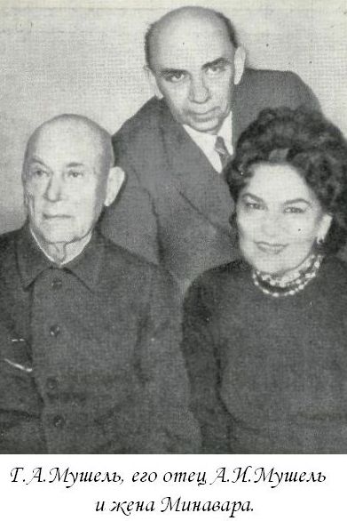 Выдающийся узбекский композитор, пианист, педагог. Заслуженный деятель искусств Уз ССР(1944).Профессор (1976).Основоположник узбекского музыкального искусства. Преподаватель класса композиции Ташкентской консерватории с 1944г. Автор первой в Узбекистане оперы «Фархад и Ширин» и первых балетов и симфонических произведений.Георгий Александрович Мушель относится к той замечательной плеяде композиторов Узбекистана, талант и мастерство которых определяют пути развития музыкального искусства. Произведения Г.А.Мушеля всегда восхищают новизной и оригинальностью, открывают ранее неведомые возможности выразительных средств. Огромен перечень сочинений композитора.Он обращается почти ко всем музыкальным жанрам. Весом вклад композитора в узбекский симфонизм.Его масштабные инструментальные полотна разнообразны по форме, драматургическим решениям, выразительным средствам. Наглядны достижения Г.А.Мушеля в области музыки театральных жанров, особенно балетной; плодотворно работал композитор над созданием произведений камерной музыки. Детство и юность Г.А.Мушеля прошли в Тамбове, где он родился в 1909 году. В 1921 году мальчик начинает систематически заниматься в музыкальной школе по классу рояля, затем в музыкальном техникуме (окончил в 1930 г. у проф. С. М. Старикова). К этому раннему периоду относятся и первые попытки сочинения. В 1931 году Г.А.Мушель поступает на композиторский факультет Московской государственной консерватории в класс выдающегося советского кoмпозитора Н.Я.Мясковсого.Болезнь последнего помешала Г.А.Мушелю завершить свое музыкальное образование.Заканчивает он класс композиции у М.Ф. Гнесина и А.И.Александрова одновременно совершенствует свои пианистические навыки в классе проф. Л. Н. Оборина. В числе студенческих сочинений Г.А.Мушеля произведения фортепьянные, вокальные, камерные и симфонические. В качестве дипломной работы им был представлен первый концерт фортепьяно с оркестром и фортепянные «Прелюдия и фуга». В 1936 году, в год окончания Г. Мушелем московской консерватории, в Ташкенте открывается первое в Средней Азии высшее учебное музыкальное заведение.Туда приглашаются педагоги и выпускники Московской консерватории.Среди них Г.А.Мушель, связавший свою последующую жизнь с Узбекистаном.Он сближается с известными знатоками и тонкими исполнителями и профессионалами Мулла Туйчн Ташмухамедовым, Шорахимом Шоумаровым, Тохтасином Джалиловым, Юнусом Раджаби и другими и постигает через них самобытное музыкальное наследие узбекского народа. Его более глубокому изучению древнейшей узбекской культуры способствовало знакомство с видными этнографами, первыми собирателями и исследователями узбекского музыкального наследия Н. Н. Мироновым, Е. Е. Романовской, В. А. Успенским. Вскоре Г.А.Мушелю удалось практически приобщиться к новому для него миру узбекской музыки. Уже в конце 1936 года он приглашается В. А. Успенским в качестве соавтора при подготовке второй редакции музыкальной драмы «Фархад и Ширин» для показа в Москве на 1 Декаде узбекской литературы и искусства. Этому спектаклю суждено было иметь свою историю, новым этапом которого явилось создание в 1941 году на его основе оперы (также совместно с В. А. Успенским). Работа Г.А.Мушеля над созданием музыкальной драмы не была эпизодической. Он — соавтор еще трех произведени
