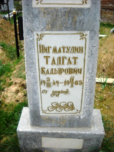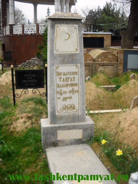 Актер кино. Герой популярных кинобоевиков, поэт, сценарист, режиссер.Талгат Нигматулин родился 5 марта 1949 года в киргизском городке Кызыл-Кия.Окончил Московское Училище циркового и эстрадного искусства, ВГИК (1971 - мастерская С. Герасимова и Т. Макаровой), сценарное отделение ВКСР при Госкино СССР (1978). С 1971 - актер киностудии «Узбекфильм».Чемпион Узбекистана по карате.Учась в цирковом училище, Талгат серьезно увлекся борьбой, занимался восточными единоборствами.Обладал колоритной внешностью и несомненным талантом.Снялся более чем в двух десятках фильмов, среди которых «Седьмая пуля» (1972), «Ночь на 14-й параллели» (1971) «Встречи и расставания», «Сказание о Сиявуше», «Вооружен и очень опасен» (1977), «Пираты XX века» (1979), «Право на выстрел» (1981), «Приключения Тома Сойера и Гекльберри Финна» (1981), «Волчья Яма» (1983), «Один и без оружия» (1984), «Противостояние» (1984). Талгат Нигматуллин получил всесоюзную известность, сыграв в фильме “Пираты двадцатого века”. Талгат пользовался известностью и в спортивных кругах: он был чемпионом Узбекистана по восточным единоборствам , был одним из лучших каратистов Советского Союза. Пробовал себя и на литературном поприще, писал стихи, новеллы, узбекский певец Мансур Ташматов с успехом исполнял песню “Березы, русские березы” на его стихи. Судьба этого талантливого актера сложилась трагически.Увлекшись восточной философией, он вступил в секту, руководителями которой оказались преступники. "Духовные братья" убили его во время поездки в Вильнюс.Талгат Нигматуллин ушел из жизни 12 февраля 1985 года. Улица в городе Кызыл-Кие, где родился актер, переименована в улицу Талгата Нигматуллина.Похоронен Талгат Нигматуллин на кладбище “ Чилонзор Ота”, недалеко от киностудии Узбекфильм, рядом с могилой знаменитого кинорежиссера Эсона Каримова.Фамильные надписи на надгробной плите обновлены автором проекта.