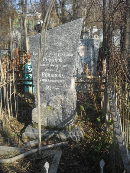 Ученый математик. Доктор физико-математических наук (1936).Профессор (1937).Заслуженный деятель науки УзССР(1949 Николай Павлович родился в 1907 г. в селе Больше -Окинск Иркутской области, в семье рабочего. Высшее образование получил в Иркутском университете. Окончив в 1929 г. университет, он поступил в аспирантуру при МГУ, где занимался под руководством члена-корреспондента АН СССР А. Я. Хинчина и акад. О.Ю.Шмидта.В 1935 г. он защитил диссертацию, и ему была присуждена степень доктора физико-математических наук.С 1932 по 1944 г. Николай Павлович работал в Томском университете, сначала доцентом, потом профессором. С 1944 по 1951 г. Н. П. заведовал кафедрой в Узбекском университете (г. Самарканд).С 1951 г. заведующий кафедрой теории чисел и алгебры Сагу. Основными направлениями научной деятельности Николая Павловича являются аддитивная теория чисел, операторная дзета-функция и однопараметрические полугруппы линейных операторов, вопросы связи гильбертова пространства и теории чисел, аналитические функции целого аргумента.В 1934 г. Н. П. получил замечательные результаты в аддитивной теории чисел.В 1935 г. Н. П. значительно снизил константу Шнирельмана в ослабленной проблеме Гольдбаха. Его работа положила начало ряду исследований, посвященных дальнейшему снижению константы Шнирельмана, - вопросу, весьма актуальному до известного открытия академика И. М. Виноградова, решившего тернарную проблему Гольдбаха.Еще в студенческие и аспирантские годы Н. П. заинтересовали некоторые применения операторных методов в теории чисел. Позже, в 1935 г., интерес к этим вопросам у Н. П. усилился под влиянием идей Л. Г. Шнирельмана, который занимался аналогичными вопросами. Частные случаи операторной дзета-функции рассматривались еще Л. Г. Шнирельманом; в более общем виде они были развиты Н. П. Романовым. Н. П. ввел общее понятие операторной дзета-функции и гамма- функции на основе теории однопараметрических операторных полугрупп. Им были получены аналоги теории дзета-функции Римана, в частности, был получен операторный аналог функционального уравнения Римана. На этом пути получаются не только теоретико-числовые, но и чисто аналитические факты. Н. П. Романов нашел разнообразные методы построения однопараметрических полугрупп линейных операторов в различного рода функциональных пространствах и сделал важный вклад в исчисление инфинитезимальных операторов. Значительная часть работ Н. П. посвящена приложению теории гильбертова пространства к теории чисел.Им даны новые, основанные на теоретико-числовых соображениях методы построения ортогональных последовательностей. Н. П. нашел условия полноты для некоторых систем вида {у(пх)} (базисы Тёплера). Используя общие принципы, развитые в своих работах, Н. П. получил большое число различных эквивалентов гипотезы Римана о корнях дзета-функции. В последнее время Н. П. много работал над усовершенствованием элементарных методов в теории чисел, исследованием асимптотики степенных рядов на границе круга сходимости и другими вопросами. Им воспитана большая группа математиков, и среди них большое число лиц из национальностей Средней Азии. Н. П. Романов вел большую общественную работу и уделял большое внимание делу подготовки математических кадров Средней Азии.Награжден орденом “ Трудового Красного Знамени “.Место захоронения:Кл№1(Ботки