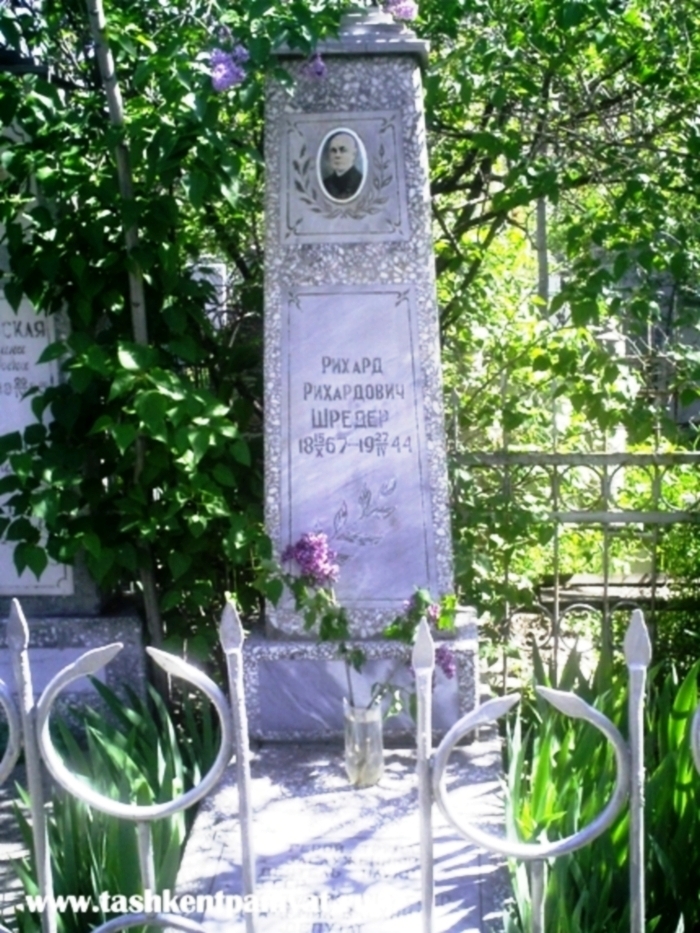 Родился в г. Москве. Окончил Московский университет (1892), Московский СХИ (1896). Доктор с.-х. наук (1935), профессор (1921), академик ВАСХНИЛ (1935). Выдающийся ученый в области биологии, селекции плодовых культур, агротехники орошаемого и сухого земледелия, развития сельского хозяйства Средней Азии. Работал ассистентом кафедры частного земледелия Московского СХИ (1895–1900). Командирован в Цюрихский политехнический и Лейпцигский университеты (1900–1902). Заведующий (1902–1927), директор (1927–1944) Туркестанской с.-х. опытной станции; одновременно председатель Туркестанского общества сельского хозяйства (1904–1918), профессор, зав. кафедрой частного земледелия Среднеазиатского государственного университета (1921–1928), профессор, зав. кафедрой хлопководства Среднеазиатского хлопково-ирригационного института (1929–1930).Проводил исследования по культуре хлопчатника (удобрения, полив, густота состояния, селекция и т.д.) и ряду других растений (пшеница, картофель, люцерна, кенаф, ворсильная шишка, кукуруза и др.). Вывел сорт хлопчатника № 1306 (“Шредер”), который в свое время сыграл большую роль в продвижении хлопчатника в северные районы Узбекистана, Киргизии и Казахстана. Провел большую работу по изучению и оценке плодовых пород в условиях УзССР. Научно обосновал принципы продуктивного садоводства и перспективы его развития в республиках Средней Азии. Провел большую исследовательскую работу по вопросам периодичности плодоношения яблони. Занимался вопросами богарного земледелия. Основатель первого земледельческого журнала “Дехкан” на узбекском языке.Герой Труда Узбекской ССР (1924). Награжден орденом "Трудового Красного Знамени" УзССР (1928), орденом "Трудового Красного Знамени" СССР (1939), Большой золотой медалью ВСХВ (1940). Академик АН УзССР (1943). Опубликовано около 250 научных трудов, в том числе 9 книг и брошюр.Указом президента республики Узбекистан Р.Р. Шредер награждён посмертно орденом "Буюк хизматлари учун" ("За выдающиеся заслуги").Место захоронения : Кл. №1, Боткинское. Карта №24.