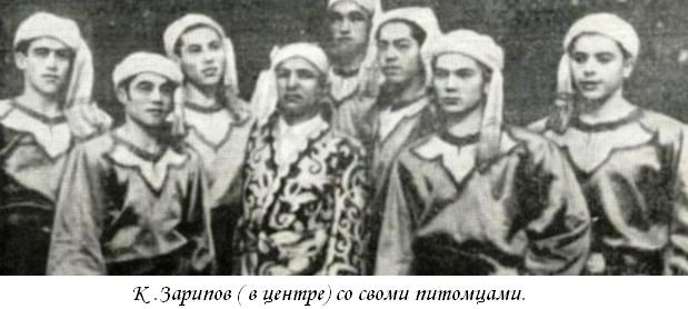 Деятель циркового искусства.Основатель узбекского цирка.Народный артист УзССР (1939).Известный как (Карим - Кизик).Руководитель номера Джигиты Узбекистана и дрессировщик лошадей.Вспоминая о старейшем мастере манежа, народном артисте Узбекской ССР Кариме Зарипове, не перестаешь изумляться тому, как может много сделать за свою жизнь один человек.Родился К.Зарипов в 1893г.В 1900 году начал свою трудовую деятельность.До революции он работает во многих узбекских и русских цирковых труппах, пешим или на лошади исколесив всю Среднюю Азию и, несмотря на все невзгоды, не покинув родного цирка.В1904 году он работает в первой национальной цирковой труппе; в 1918 вступает в цирк «Кооператив».В 1920 году К. Зарипов работает в цирке Юпатова.В 1927 году Карим ака организовывает цирковой коллектив «Кооператив», куда приглашает своего друга Юнуса Раджаби организовать настоящий оркестр для сопровождения цирковой программы, после чего оркестр в полном составе был приглашен на радиокомитет Узбекистана. В 1928 году создает новую труппу «Кизил Шарк» («Красный Восток»), становится ее руководителем. В 1930 году К. Зарипов — один из организаторов Ташкентского государственного цирка. В 1933 году Карим Зарипов создает цирковое училище, он сам директор и преподаватель.В 1937году Ташкентское Главное управление государственных цирков под руководством Карим Зарипова входит в состав Московского Объедения Государственных цирков.В 1942 году, в годы войны Карим ака инициатор и организатор в создании первого Узбекского циркового коллектива.В народе Карима Зарипова называли«Карим-кызык», тем самым отдавая дань его сатирическому и комическому искусству. Национальная клоунада - масхарабозлик и кызыкчилик - занимают в его творчестве особое место.Карим Зарипов, используя богатейшие традиции своего народа, а также русского и европейского цирка, принес с собой на манеж клоунаду, которая целиком отвечала духу времени.Мало того, его заслуга заключается еще и в том, что он в двадцатые- тридцатые годы выступает, пожалуй, с первой женщиной - кызыкчи, партнером и спутницей жизни Муборакхон Зариповой. Для национального циркового искусства подобное явление было новым, необычным. Правда, они не могли в то время найти своего образа на манеже (К. Зарипов выступал в образе традиционного «рыжего», а М. Зарипова - в образе «белого»), но то что они создали, заслуживает большого внимания. Карим-кызык вместе с Муборак Зариповой исполняли и еще одну народную репризу, издавна бытующую в репертуаре актеров традиционного театра и узбекского цирка. Называется она «Песня и черт» (или «Шайтан»).Комедианты манежа высмеивают в этом произведении некоторых молодых людей, склонных к хвастовству, и вместе с тем оружием сатиры борются против различных суеверий.Однако на всю страну Зариповы уже стали известны, как мастера конного цирка - в дрессировке лошадей, в головокружительной, смелой джигитовке и в номере гротеск-наездницы.Еще в юношеские годы К. Зарипов освоил вольтижировку на лошади. Он долгое время работал рядом с известным в то время дрессировщиком лошадей Якубовским. А первым учителем его в дрессировке лошадей был замечательный узбекский цирковой артист Рахмон Абдухалилов, державший до революции, а затем и в двадцатые годы свою труппу. Он был руководителем и организатором труппы.Используя опыт сво